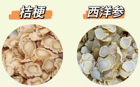 西洋参:呈棕黄色、中间有明显菊花纹理、味微苦有回甘、参味浓。
